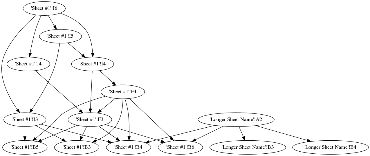 Generates a graphviz flowchart showing the cell dependencies in an Excel spreadsheet. Written to assist in reverse-engineering complex financial spreadsheets.